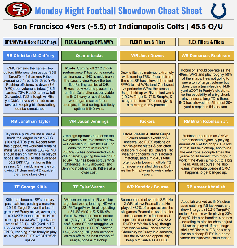 🏈📺 MNF Showdown Cheat Sheet 📺🏈