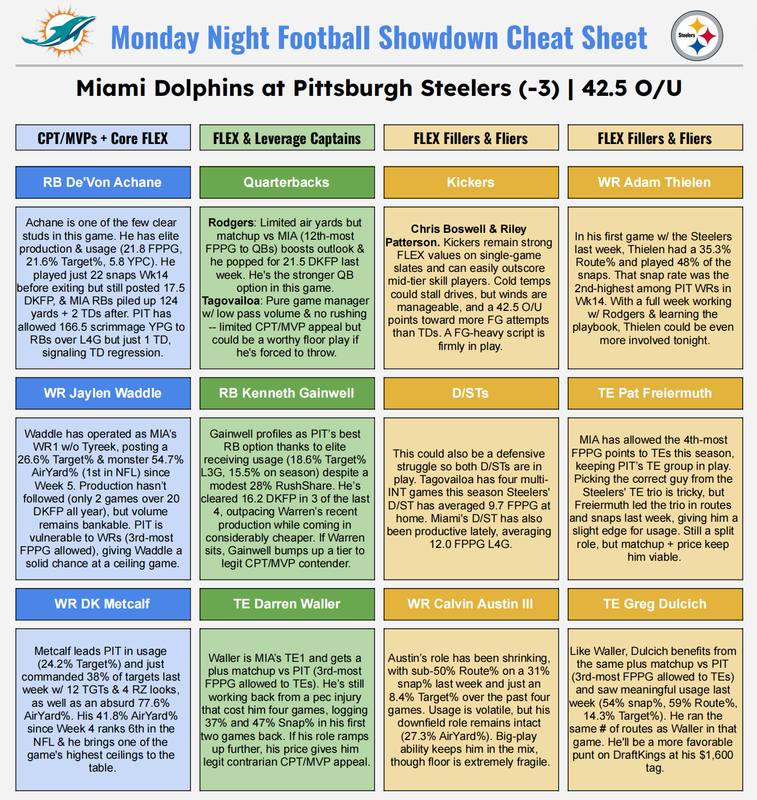 ๐๐บ MNF Showdown Cheat Sheet ๐บ๐